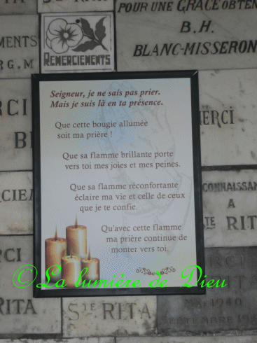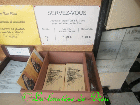 Dans cette chapelle, on trouve des médailles, des livrets de neuvaine, des veilleuses.